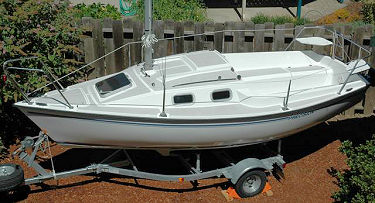 The hulls/decks are all hand laminated fiberglass construction and are well appointed with top of the line hardware, leaving little to add. The boats are also designed with trailering in mind; centerboards are used in the 15 and 185, a lead shoal keel on the 165 and we feature the very efficient shoal keel/centerboard design on the 18, 21 and 23. These keel designs gets the ballast down low for stability and the kick up centerboard is housed completely below the cabin sole. These boats have none of the bad habits that many trailerable boats have. That is, they sail! They go upwind very well; they reach, run and have stability that inspires confidence in the new sailor.